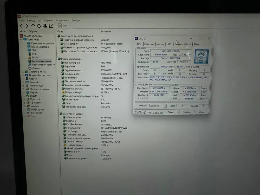 - Процесор: Intel Core i7-8650U (4 (8) ядра по 1.9 - 4.2 GHz), 8 MB Smart Cache