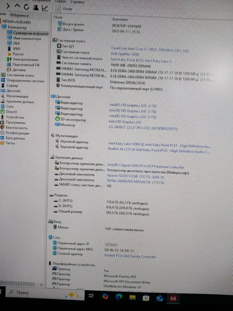 - Постійна пам'ять: 128 GB SSD M.2 NVMe Samsung + 512 GB SSD Apacer (нова комплектуюча)