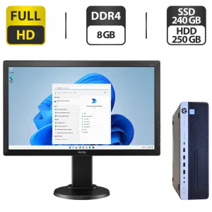 Комплект: HP EliteDesk 800 G3 SFF / Intel Core i5-6500 (4 ядра по 3.2 - 3.6 GHz) / 8 GB DDR4 / 240 GB SSD + 250 GB HDD / Intel HD Graphics 530 / DVD-ROM + Монітор Acer BL2405HT / 24" (1920x1080) TN / DVI, HDMI + Windows 11 P б/в