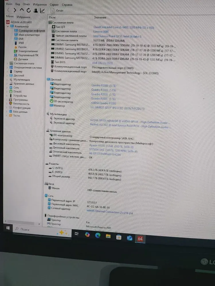 Комплект: Lenovo ThinkCentre M800 Tower / Intel Core i5-6400 (4 ядра по 2,7 - 3,3 ГГц) / 16 ГБ DDR4 / 512 ГБ SSD + 500 ГБ HDD / nVidia Quadro P2000, 5 ГБ GDDR5, 160-bit / DVD-ROM + Монітор LG 24MB37PM-B / 24" (1920x1080) IPS б/в