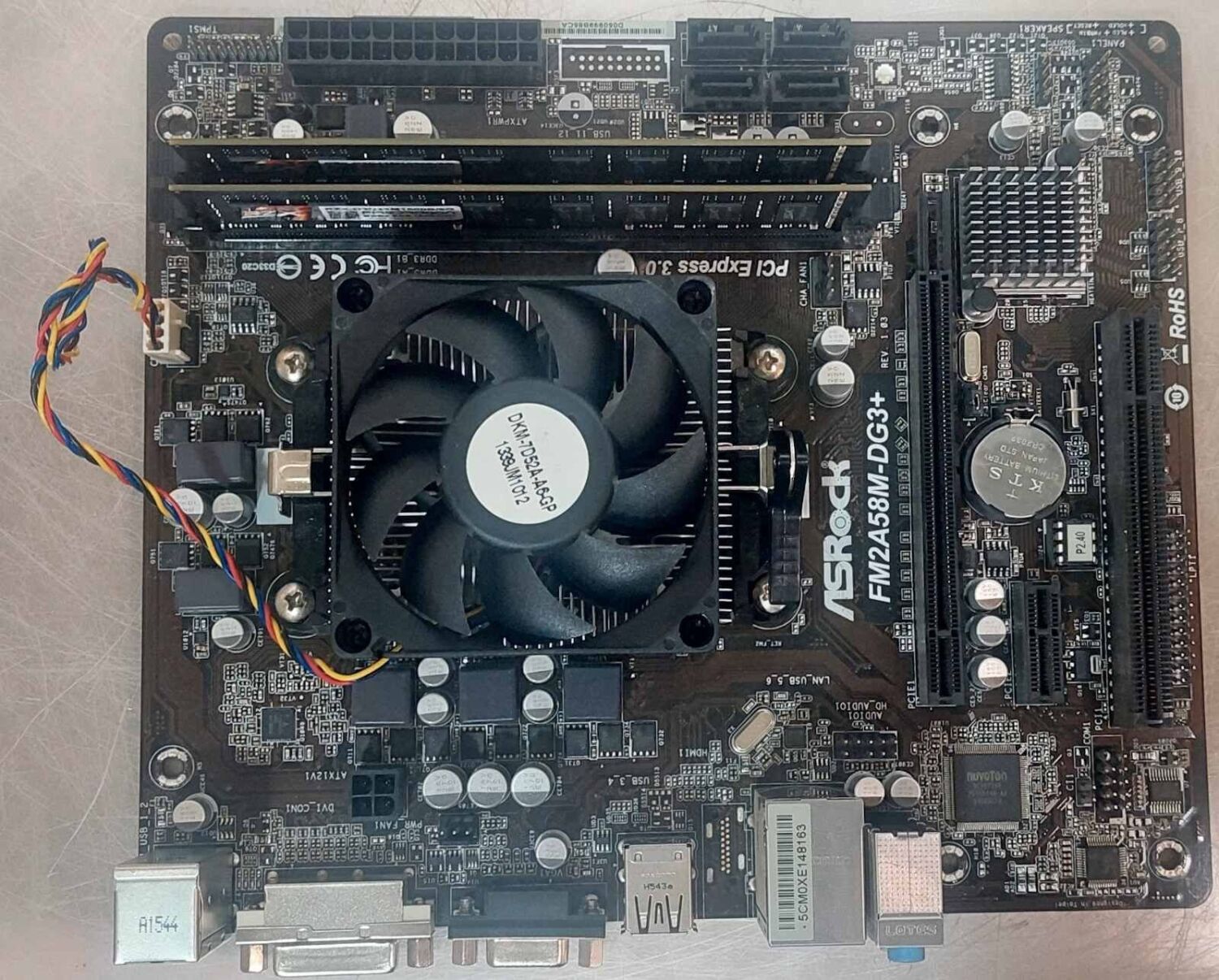 Комплект: Материнська плата ASRock FM2A58M-DG3+ / FM2+ / AMD A8-7600 (4 ядра по 3,1 - 3,8 ГГц) / 16 ГБ DDR3 / AMD Radeon R7 Graphics + Кулер б/в