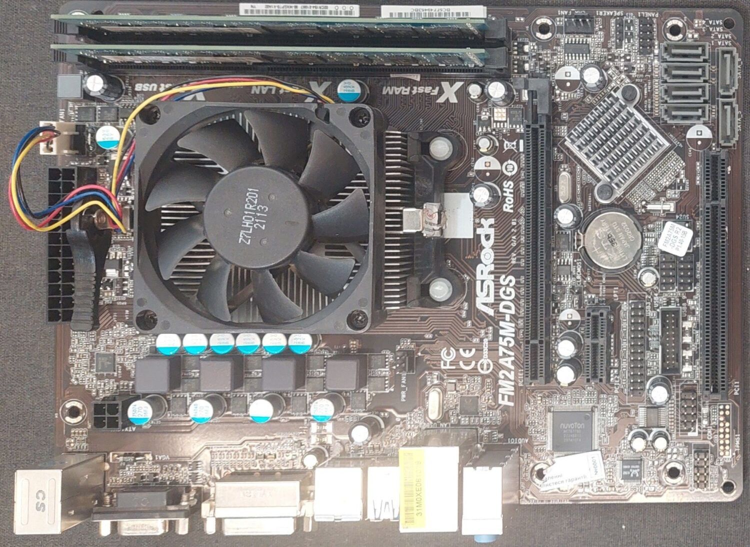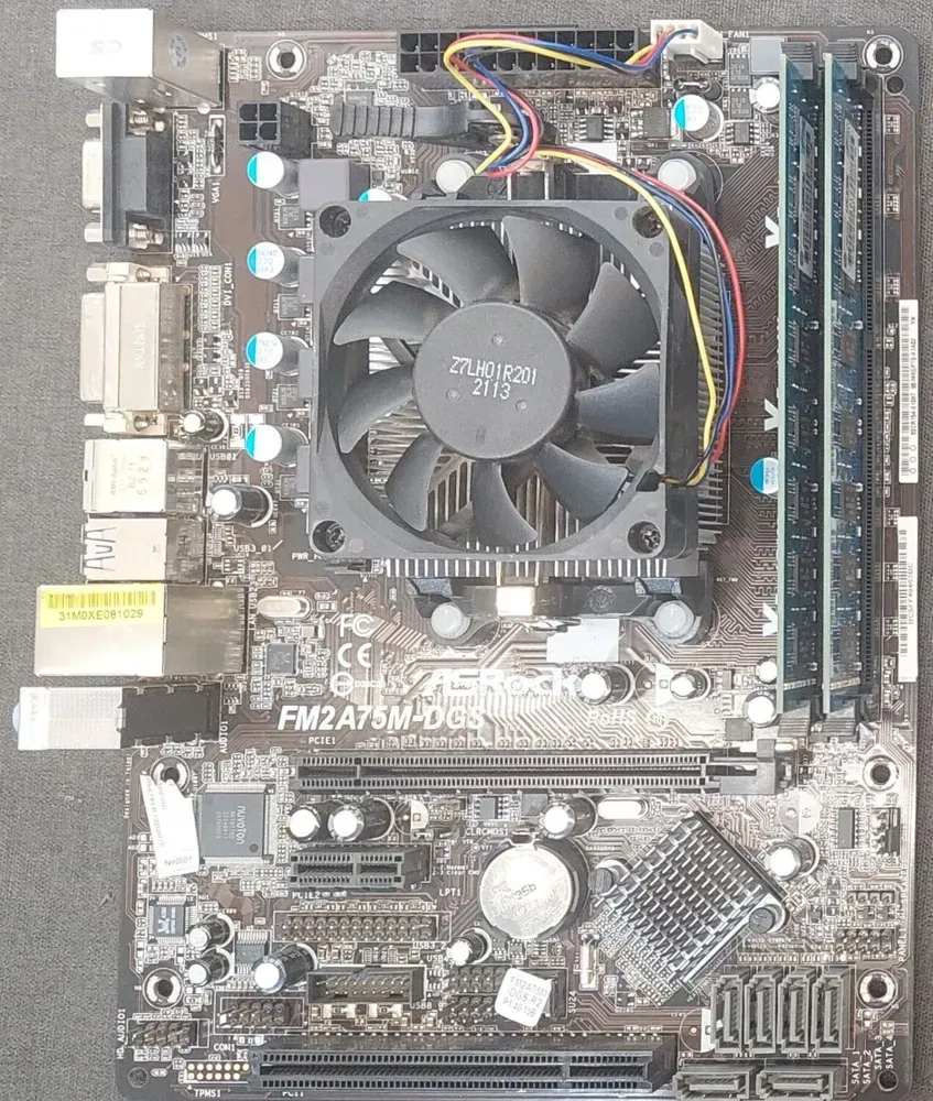 Комплект: Материнська плата ASRock FM2A75M-DGS / AMD A4-4000 (2 ядра по 3.0 - 3.2 GHz) / FM2 / 16 GB DDR3 / AMD Radeon HD 7480D + Кулер б/в