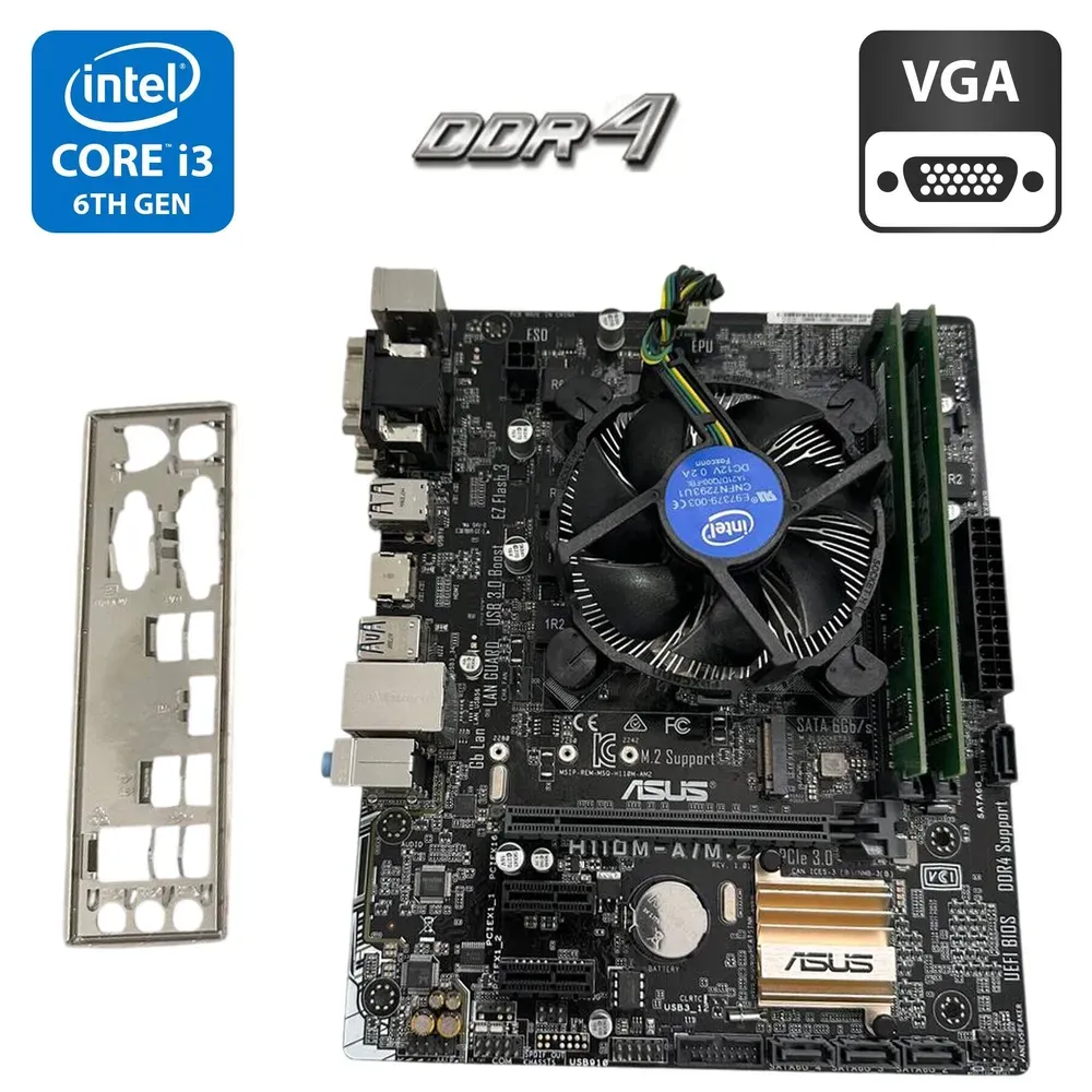 Комплект: материнська плата Asus H110M-A/M.2 з 2-ядерним процесором Intel Core i3-6100 і кулером BOX