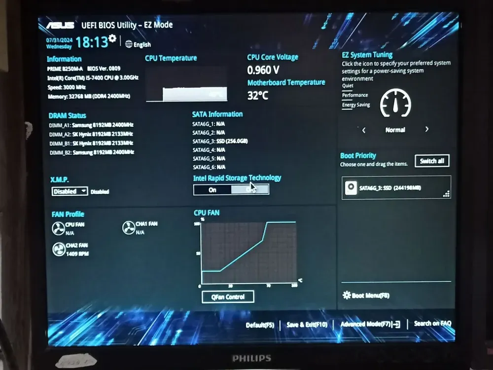Комплект: Материнська плата Asus Prime B250M-A з 4-ядерним процесором Intel Core i5-7400, оперативною пам'яттю 32 GB DDR4 і кулер