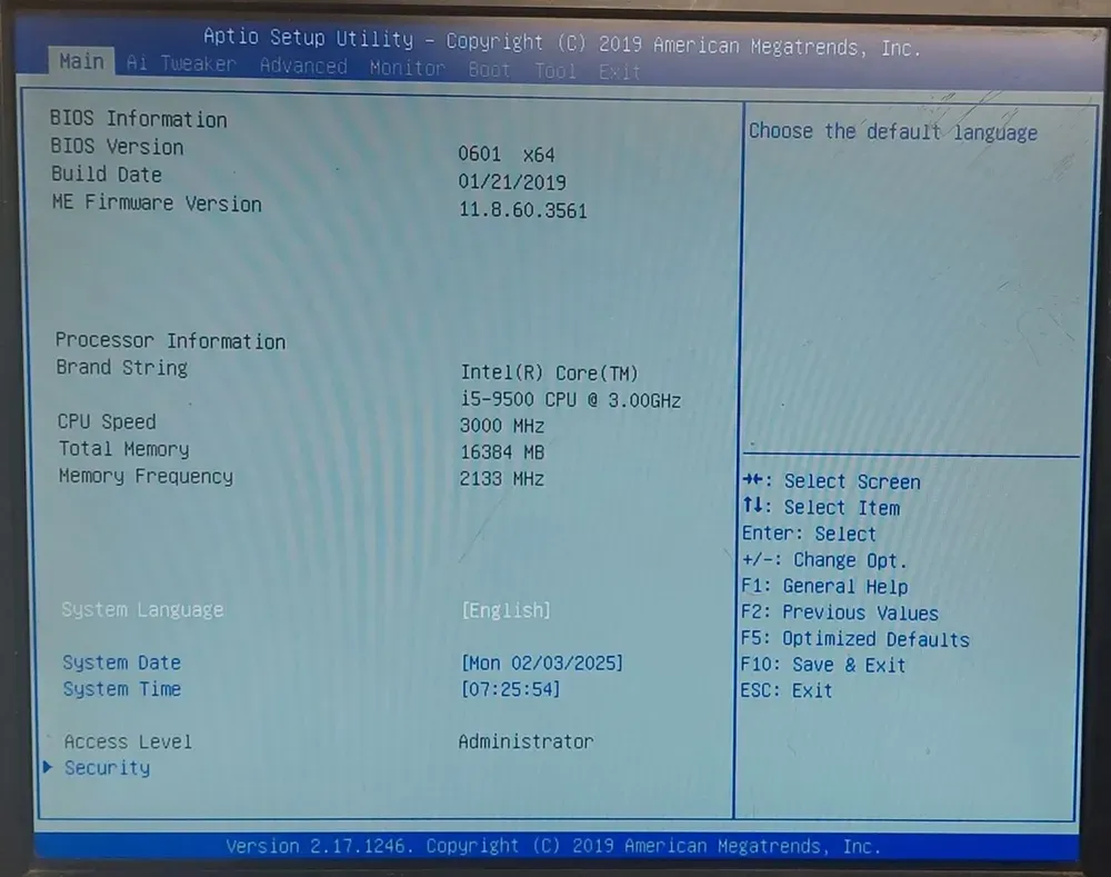 - Модель: Intel Core i5-9500