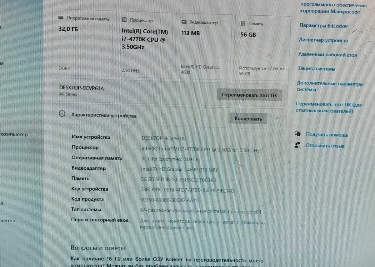 - Модель: Intel Core i7-4770K