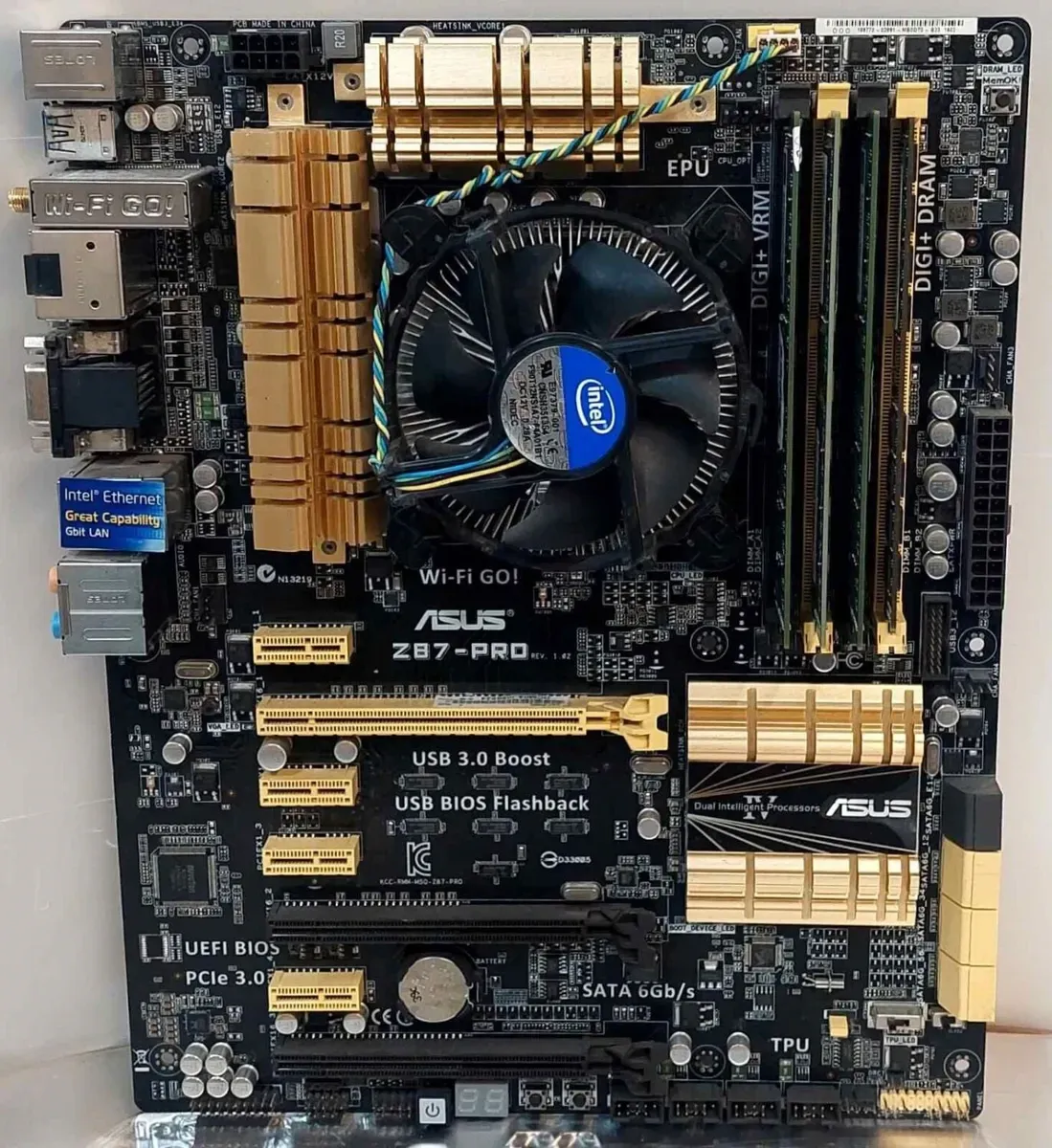 Комплект: Материнська плата Asus Z87-PRO з 4-ядерним процесором Intel Core i7-4770K, оперативною пам'яттю 32 GB DDR3 і кулером
