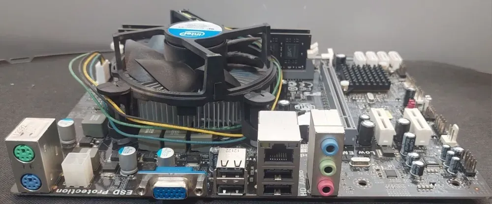 - Порти: 2x PS/2, 1x VGA, 4x USB 2.0, 1x Ethernet, 3x Audio