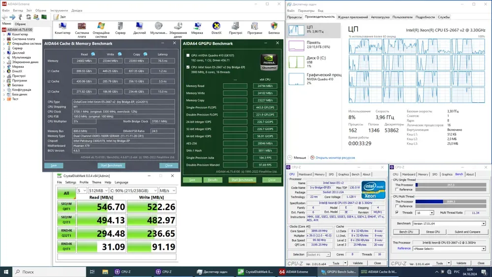 Комплект: Материнська плата Envinda X79G v1.51 з 8-ядерним процесором Intel Xeon E5-2667 v2, оперативною пам'яттю 16 GB DDR3 і 256 GB SSD M.2