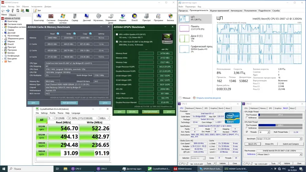 Комплект: Материнська плата Envinda X79G v1.51 з 8-ядерним процесором Intel Xeon E5-2667 v2, оперативною пам'яттю 32 GB DDR3 і 256 GB SSD M.2