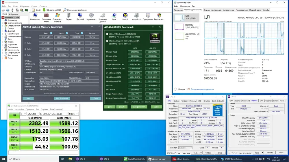 Комплект: Материнська плата HP Z440 / Intel Xeon E5-1620 v3 (4 (8) ядра по 3.5 - 3.6 GHz) / 64 GB DDR4 / Socket LGA 2011 v3+v4 / NVMe boot + кулер ID-Cooling SE-903-SD б/в