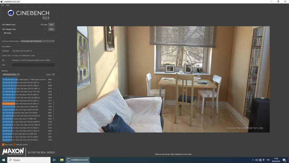 - Модель: Intel Xeon E5-2667 v3 (аналог i7-9700)