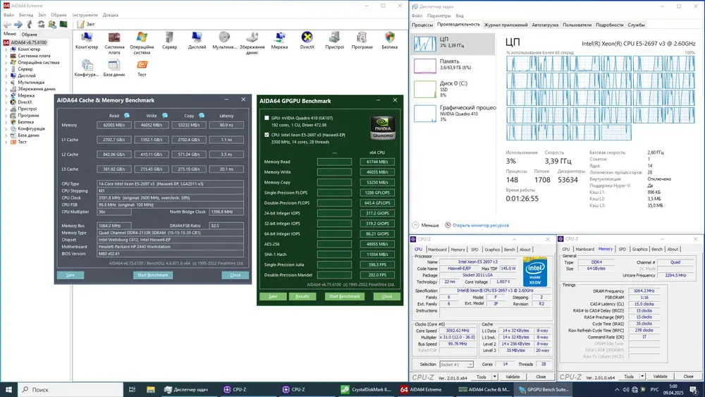 Комплект: Материнська плата HP Z440 з 14-ядерним процесором Intel Xeon E5-2697 v3, оперативною пам'яттю 64 GB DDR4 і кулер HP