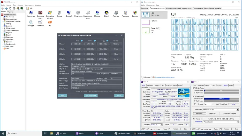 Комплект: Материнська плата Lenovo C30 з 2-ма процесорами Intel Xeon E5-2660 v2 та оперативною пам'яттю 64 GB DDR3