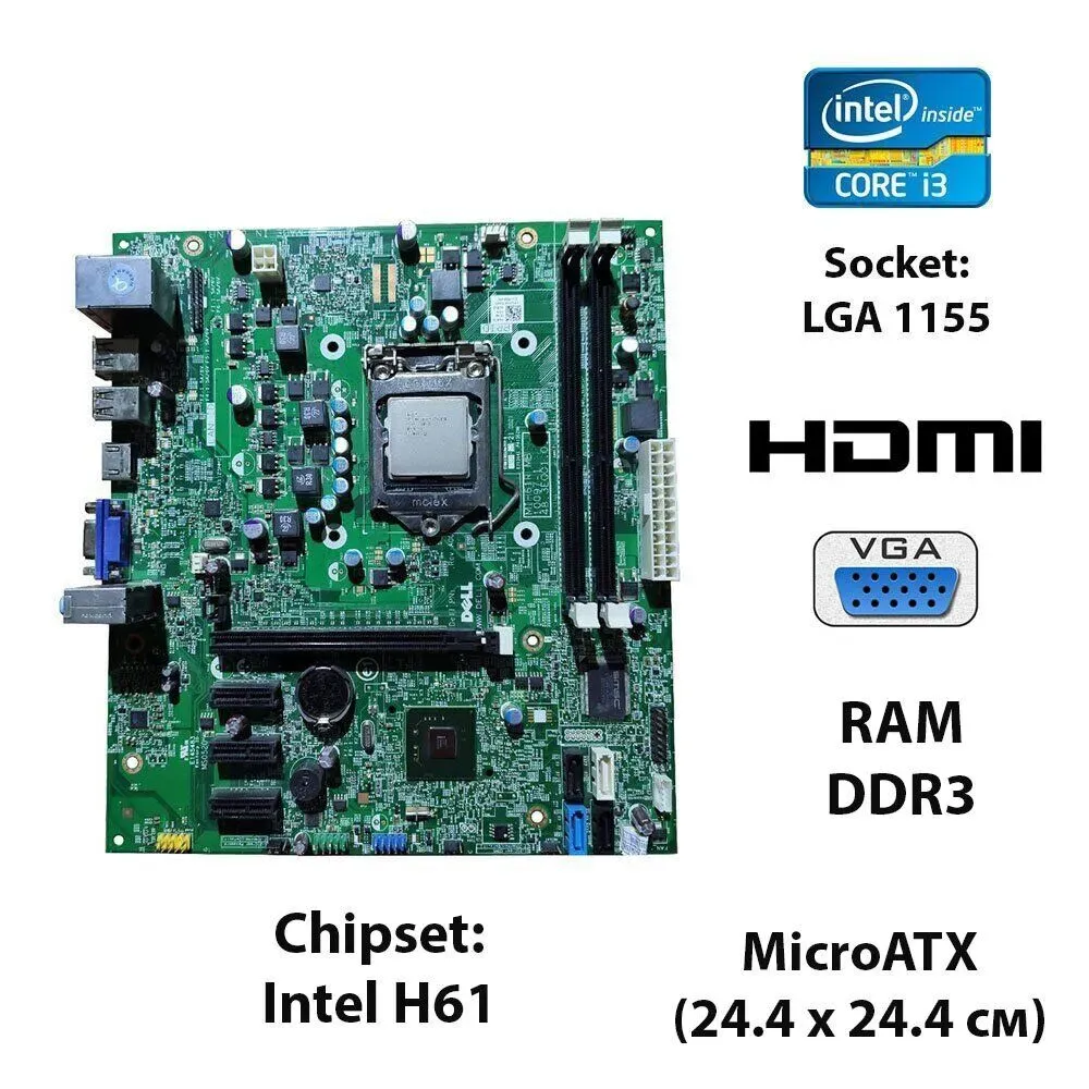 Комплект: материнська плата Dell MIH61R-MB на базі Socket LGA 1155 із процесором Intel Core i3-2120