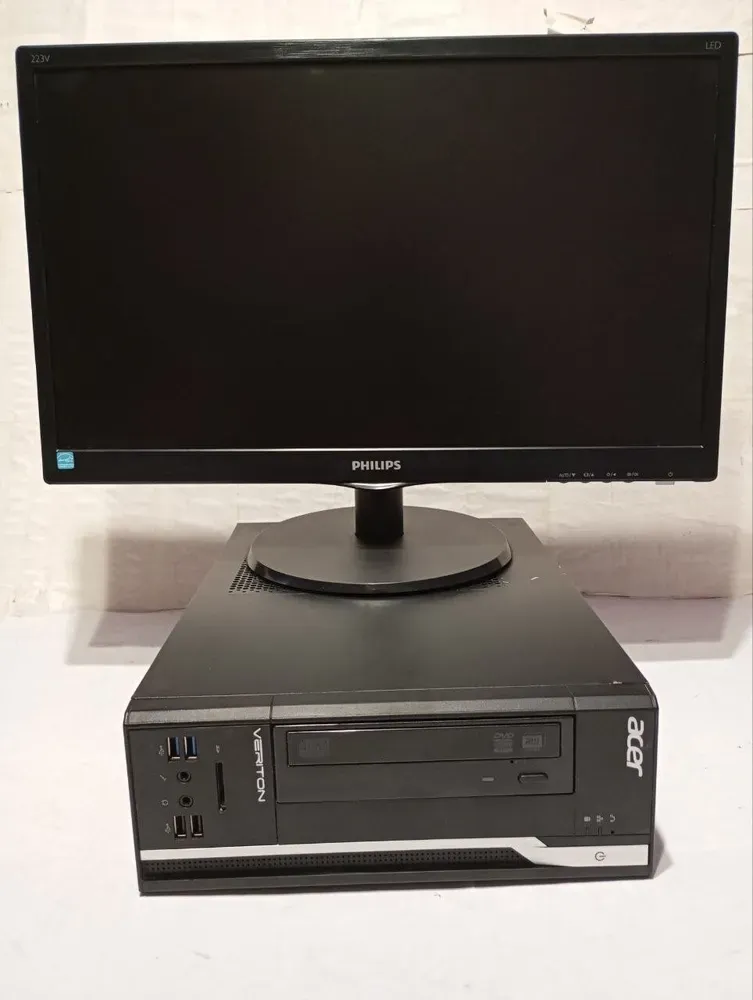 Комплект ПК Б-клас: Acer Veriton X2632G SFF / Intel Core i3-4150 (2 (4) ядра по 3.5 GHz) / 8 GB DDR3 / 320 GB HDD / Intel HD Graphics 4400 / DVD-RW + Монітор Philips 223V5L / 22" (1920x1080) TN / 1x VGA / VESA 100x100 б/в