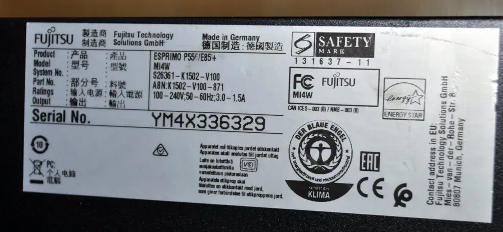 - Модель: Fujitsu Esprimo P556 E85+ Tower