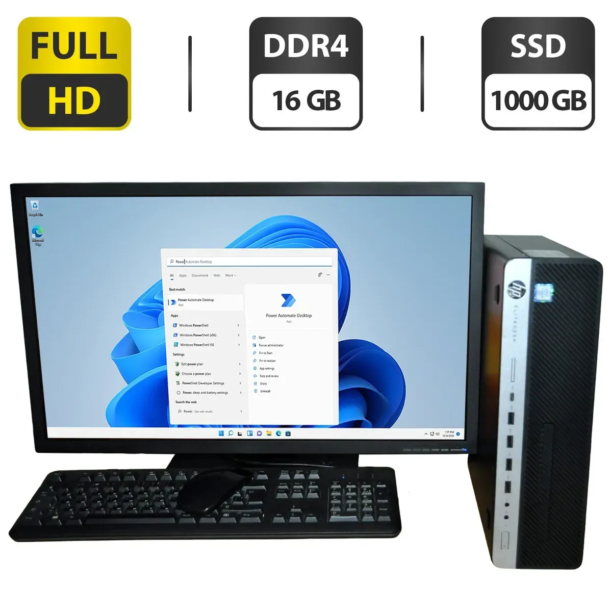 Комплект ПК: HP EliteDesk 800 G3 SFF / Intel Core i5-6500 (4 ядра по 3.2 - 3.6 GHz) / 16 GB DDR4 / 1000 GB SSD / Intel HD Graphics 530 / DVD-ROM + Монітор Б-клас Acer B243HL / 24" (1920x1080) TN / VGA, DVI б/в
