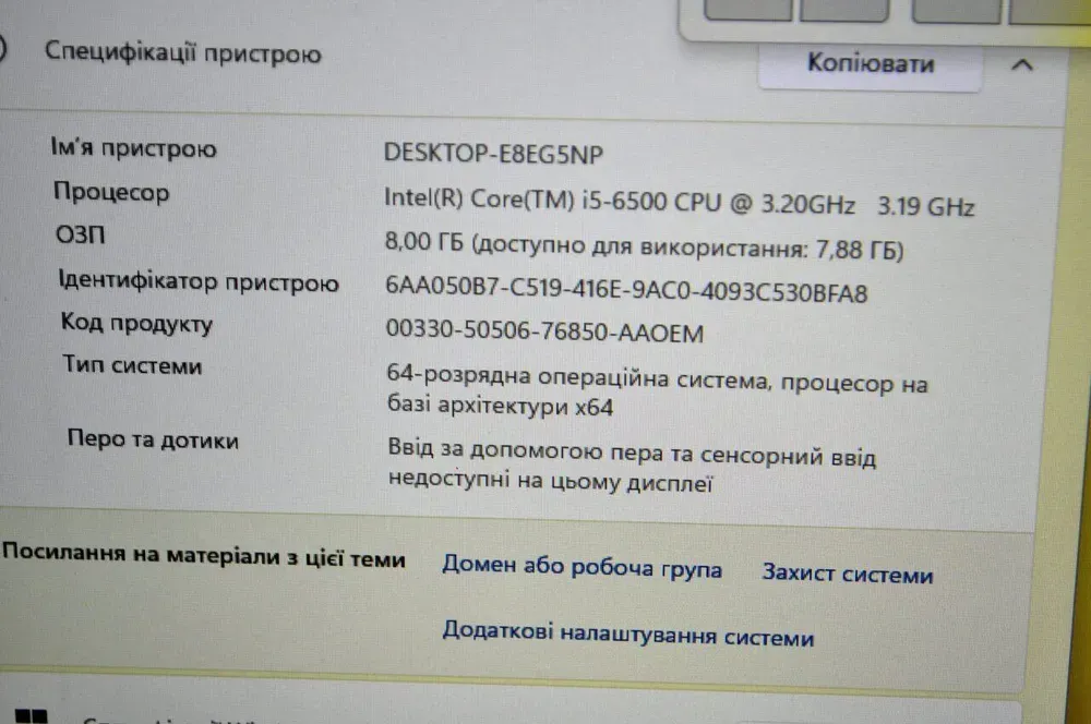 - Процесор: Intel Core i5-6500 (4 ядра по 3.2 - 3.6 GHz), 6 MB Smart Cache