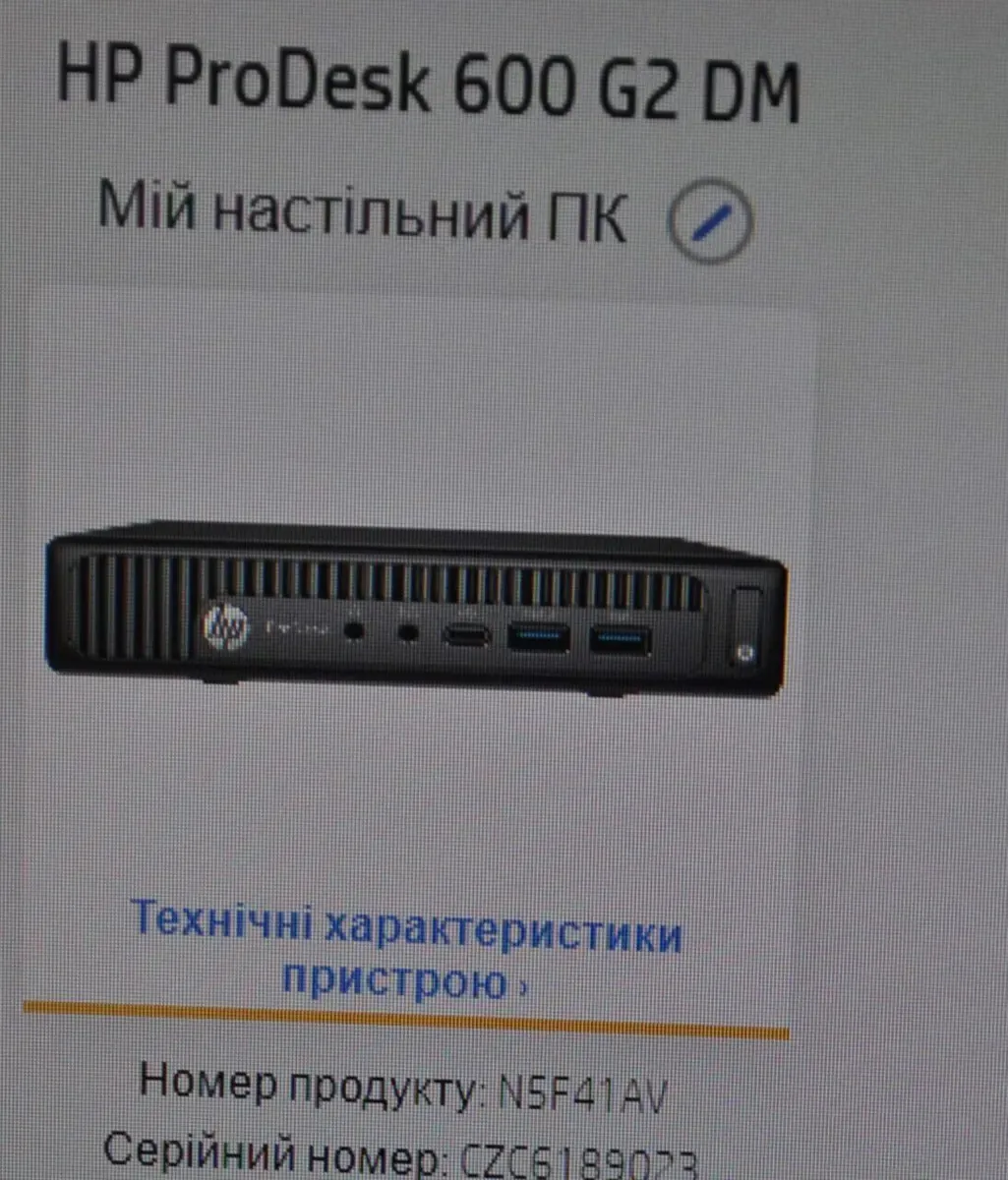- Модель: HP ProDesk 600 G2 Desktop Mini PC USFF