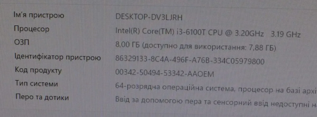 - Оперативна пам'ять: 8 GB DDR4