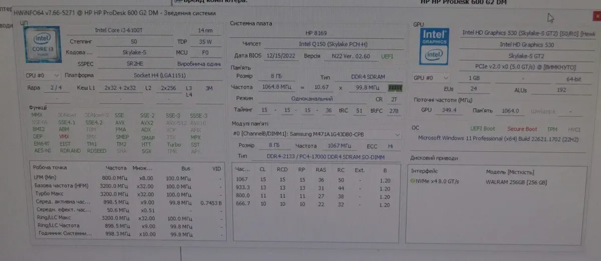 - Графіка: інтегрована Intel UHD Graphics 530 (до 1792 MB з ОЗП)