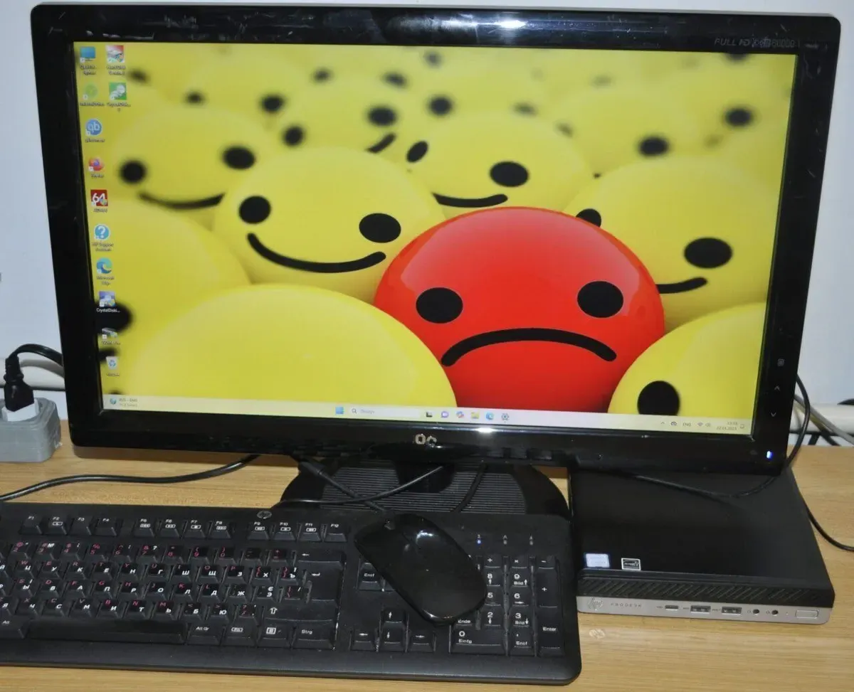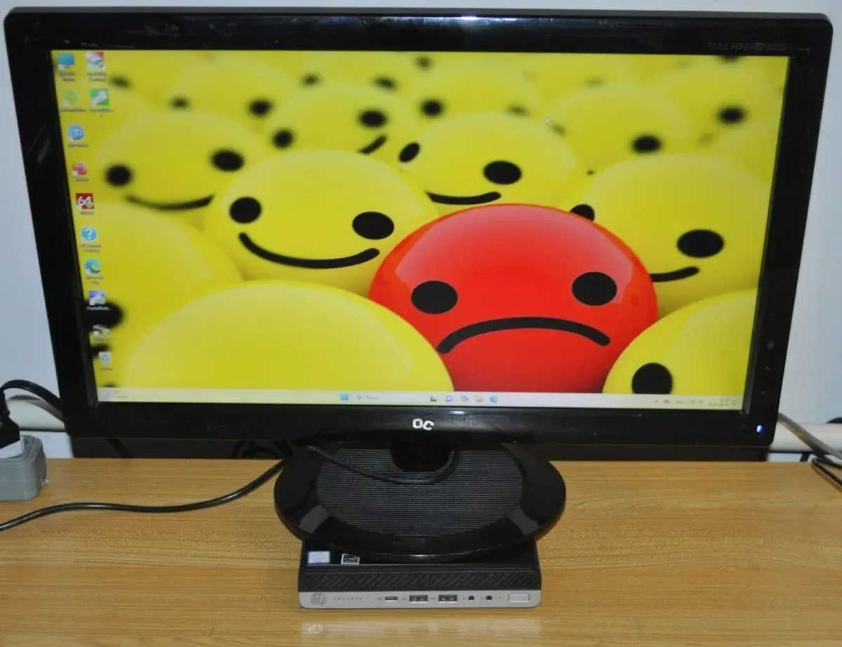 Комплект ПК: комп'ютер HP ProDesk 600 G4 Desktop Mini USFF на базі процесора Intel Core i3-8100T з оперативною пам'яттю 8 GB DDR4 і монітором Б-клас AOC 2236Vwa з матрицею 22" (1920x1080) TN для офісної роботи та домашніх завдань