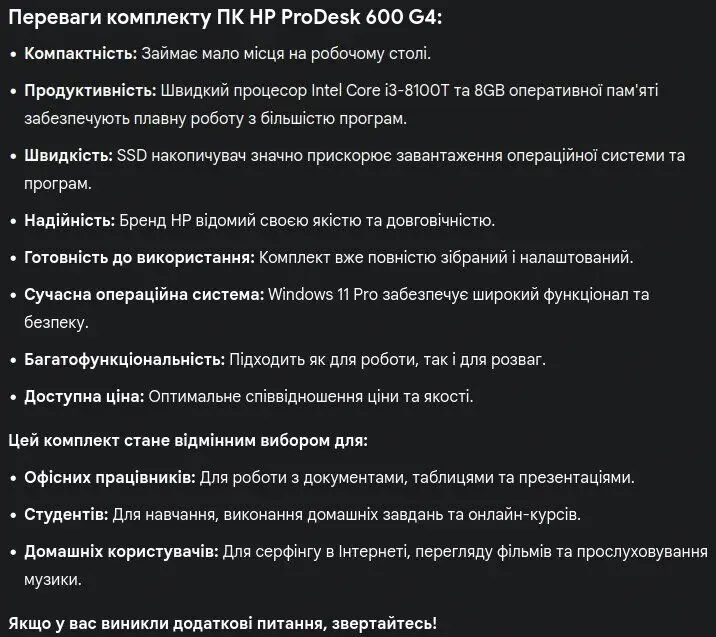 - Модель: HP ProDesk 600 G4 Desktop Mini USFF