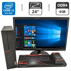 Комплект ПК: Lenovo ThinkCentre M900 SFF / Intel Core i3-6100 (2 (4) ядра по 3.7 GHz) / 8 GB DDR4 / 500 GB HDD / Intel HD Graphics 530 + Монітор Philips V Line 246V5LHAB/00 / 24" (1920x1080) TN / VGA, DVI, HDMI, USB-Hub б/в