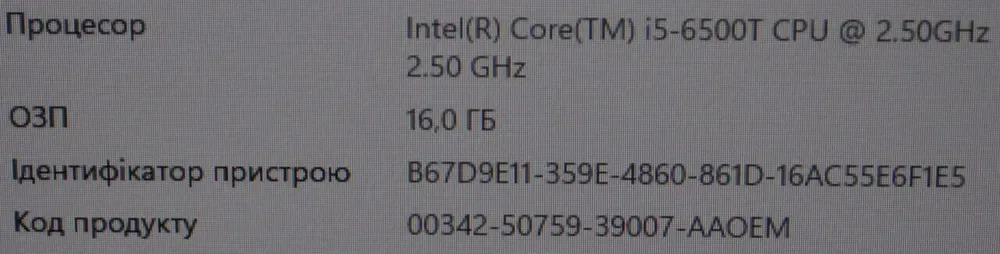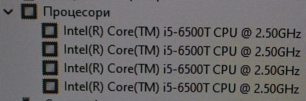 - Процесор: Intel Core i5-6500T (4 ядра по 2.5 - 3.1 GHz), 6 MB Smart Cache