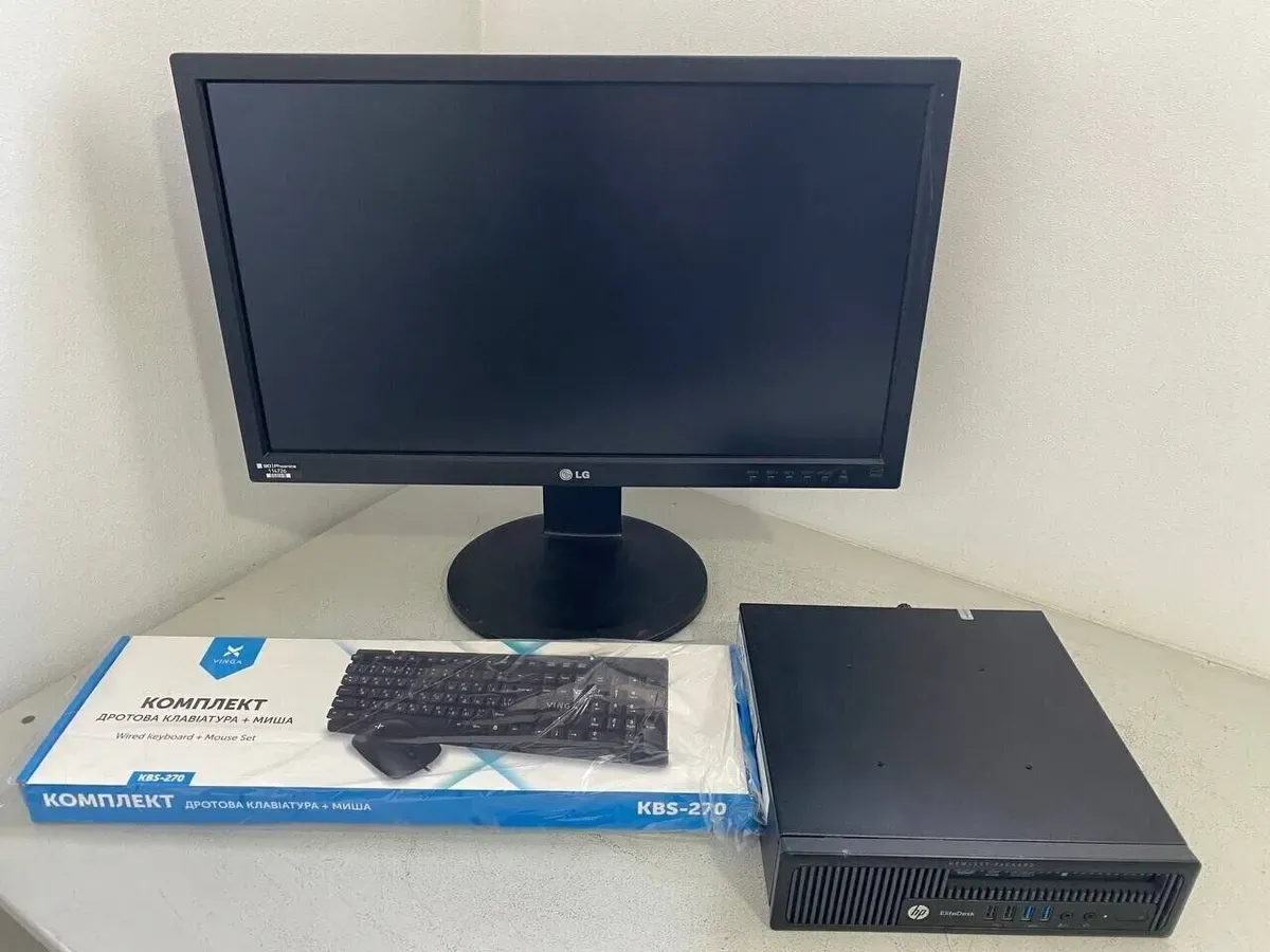 Комплект ПК: неттоп HP EliteDesk 800 G1 USFF на базі процесора Intel Core i5-4690S з оперативною пам'яттю 16 GB DDR3 і монітором LG 23MB35PY-B з матрицею 23" (1920x1080) IPS для офісної роботи та домашніх завдань