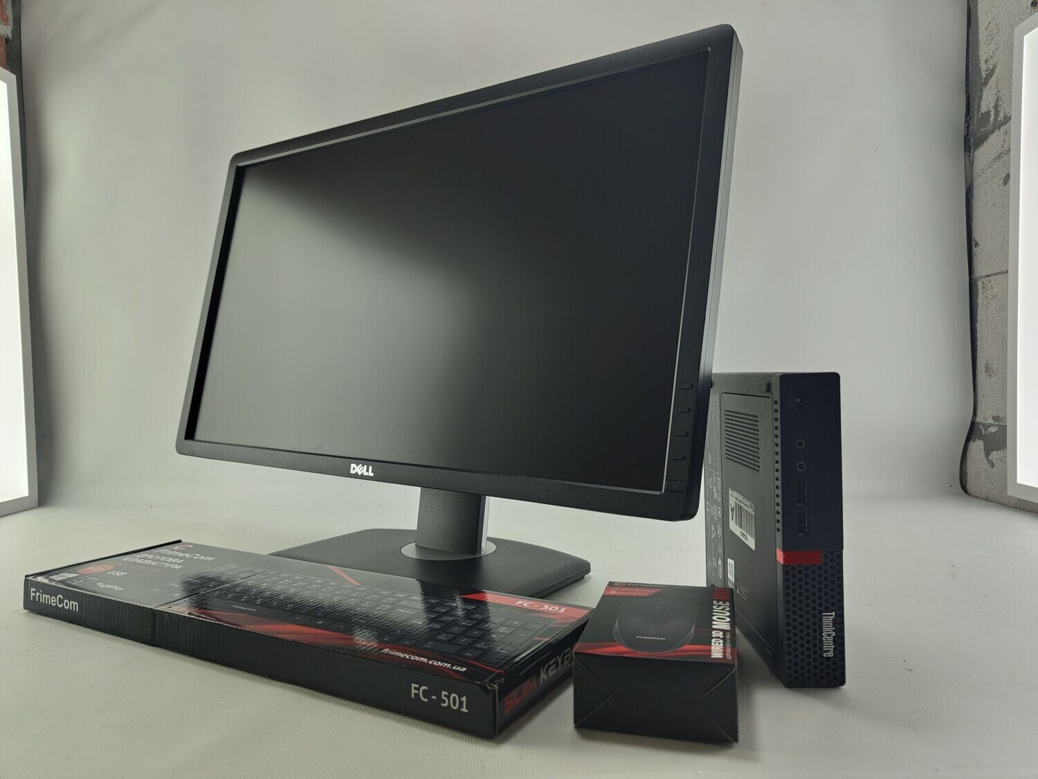 Комплект ПК: неттоп Lenovo ThinkCentre M910q Tiny USFF / Intel Core i5-7500T (4 ядра по 2.7 - 3.3 GHz) / 16 GB DDR4 / 512 GB SSD / Intel HD Graphics 630 + Монітор 24" (1920x1080) TN б/в