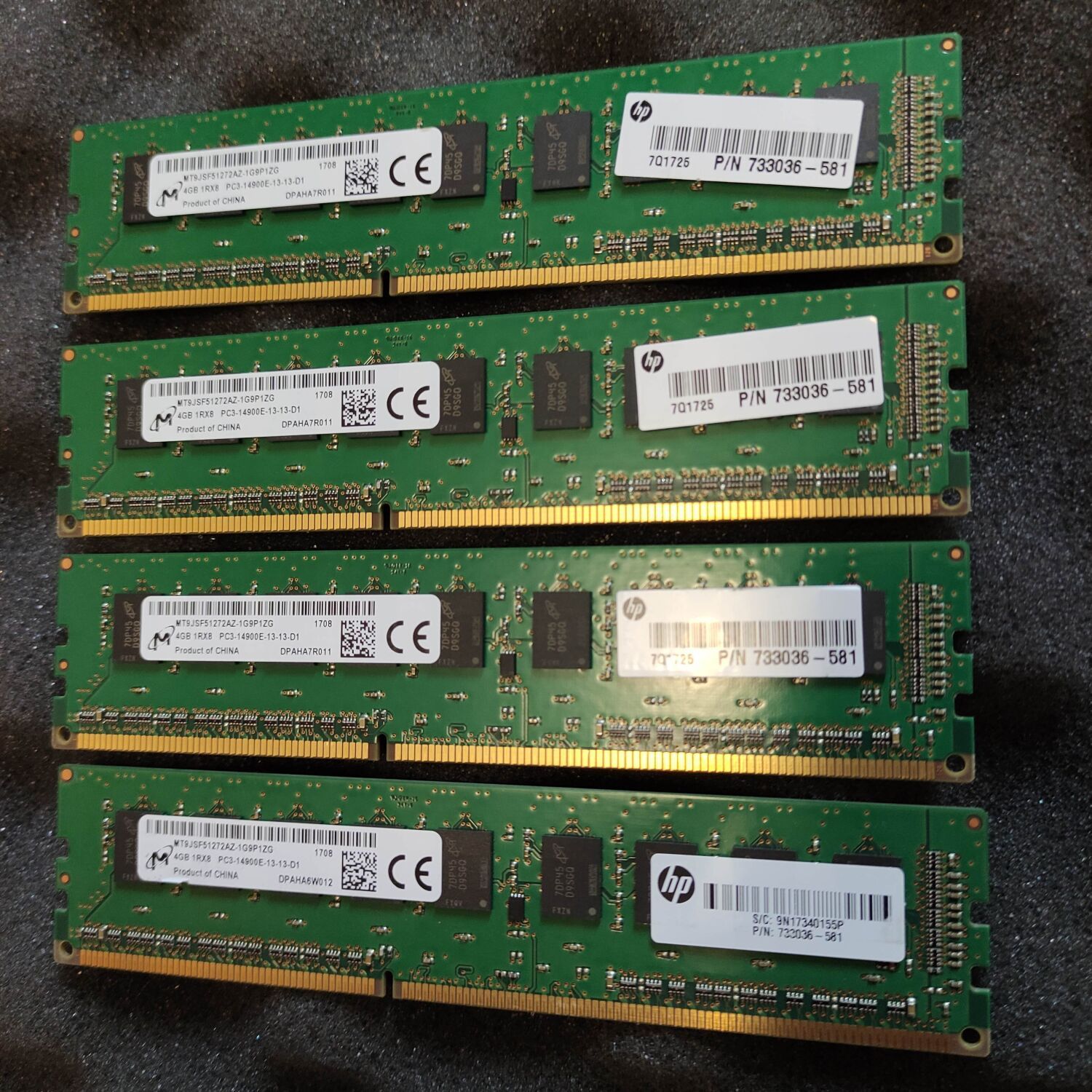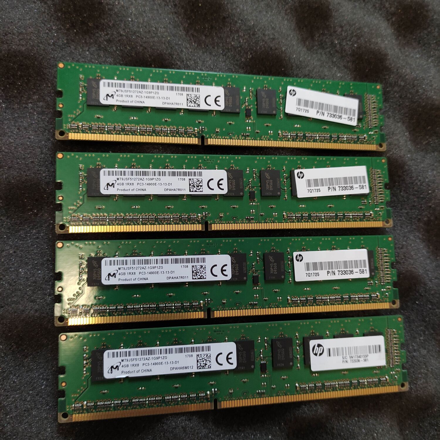 Комплект: Серверная оперативная память Micron / 16 GB (4x4 GB) / 1Rx8 PC3L-14900E / DDR3 ECC / 1866 MHz б/в
