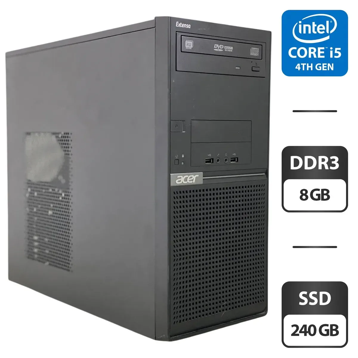 Комп'ютер Acer Extensa M2610 Tower / Intel Core i5-4440 (4 ядра по 3.1 - 3.3 GHz) / 8 GB DDR3 / 240 GB SSD / Intel HD Graphics 4600 / DVD-ROM б/в