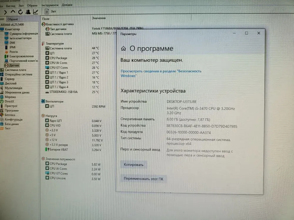 - Процесор: Intel Core i5-3470 (4 ядра по 3.2 - 3.6 GHz), 6 MB Smart Cache