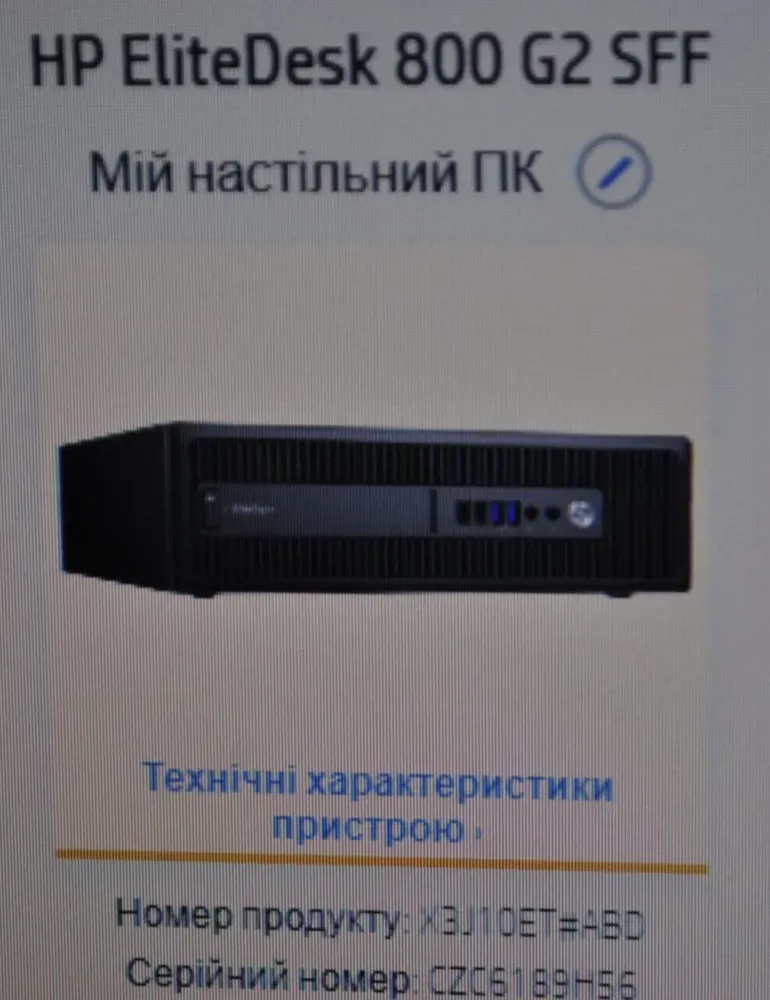 - Модель: HP EliteDesk 800 G2 SFF