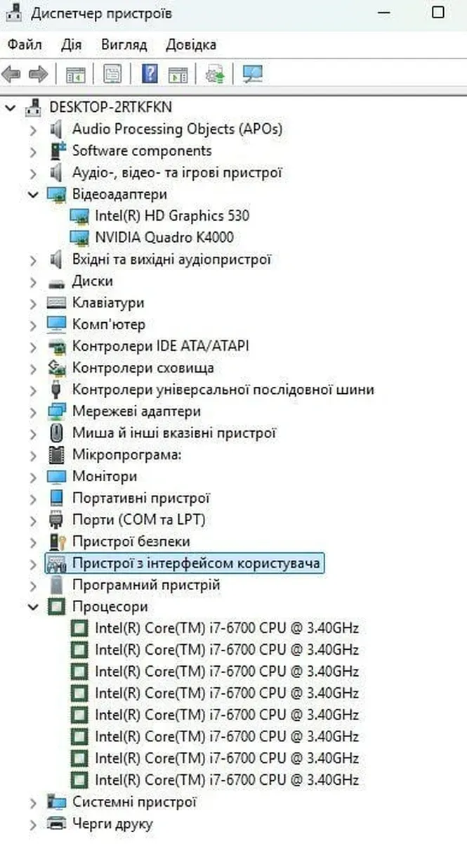- Процесор: Intel Core i7-6700 (4 (8) ядра з тактовою частотою 3,4–4,0 ГГц), 8 МБ Smart Cache