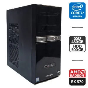 Комп'ютер Crown SM601 Black Tower на базі процесора Intel Core i7-4790S і дискретною відеокартою AMD Radeon RX 570 4 GB для офісної роботи і домашніх завдань