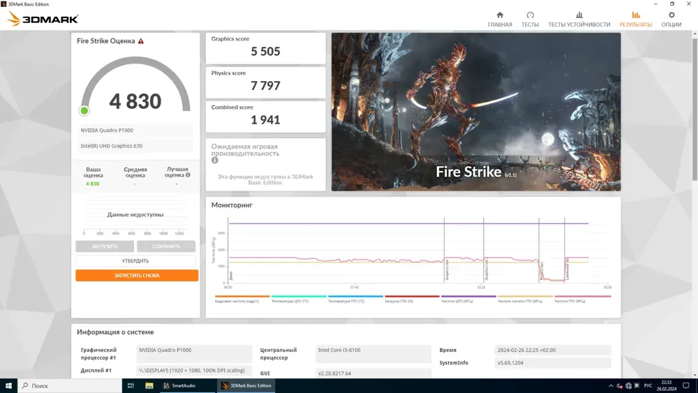 - Графіка: дискретна nVidia Quadro P1000, 4 GB GDDR5, 128-bit
