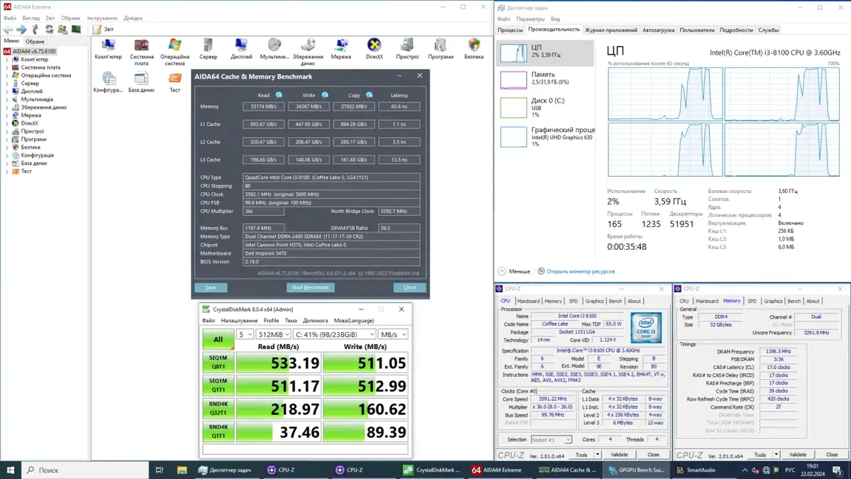 - Процесор: Intel Core i3-8100 (4 ядра з тактовою частотою 3,6 ГГц), 6 МБ Smart Cache