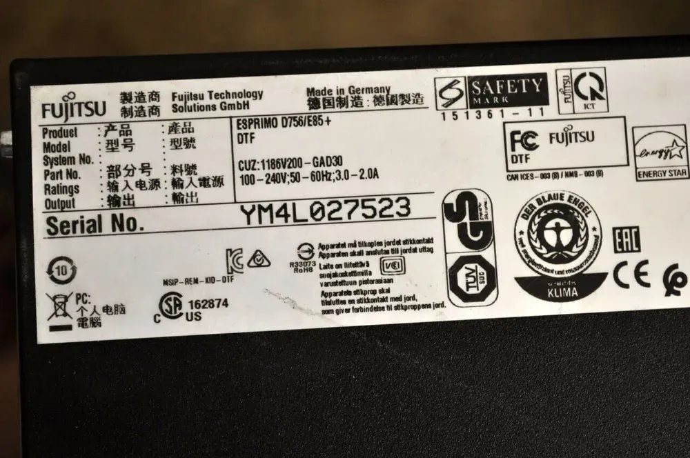 - Модель: Fujitsu Esprimo D756 E85+ SFF