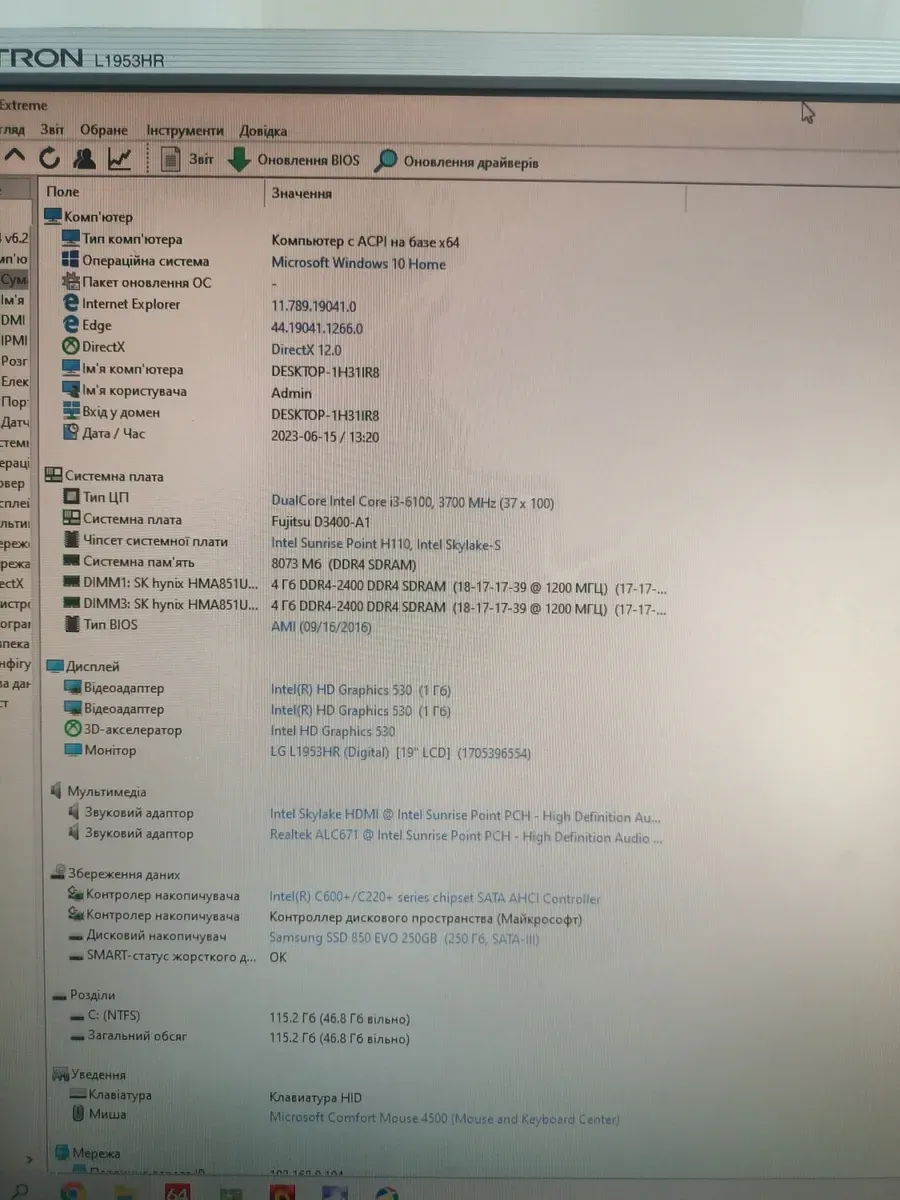 - Графіка: інтегрована Intel HD Graphics 530 (до 1792 MB з ОЗП)