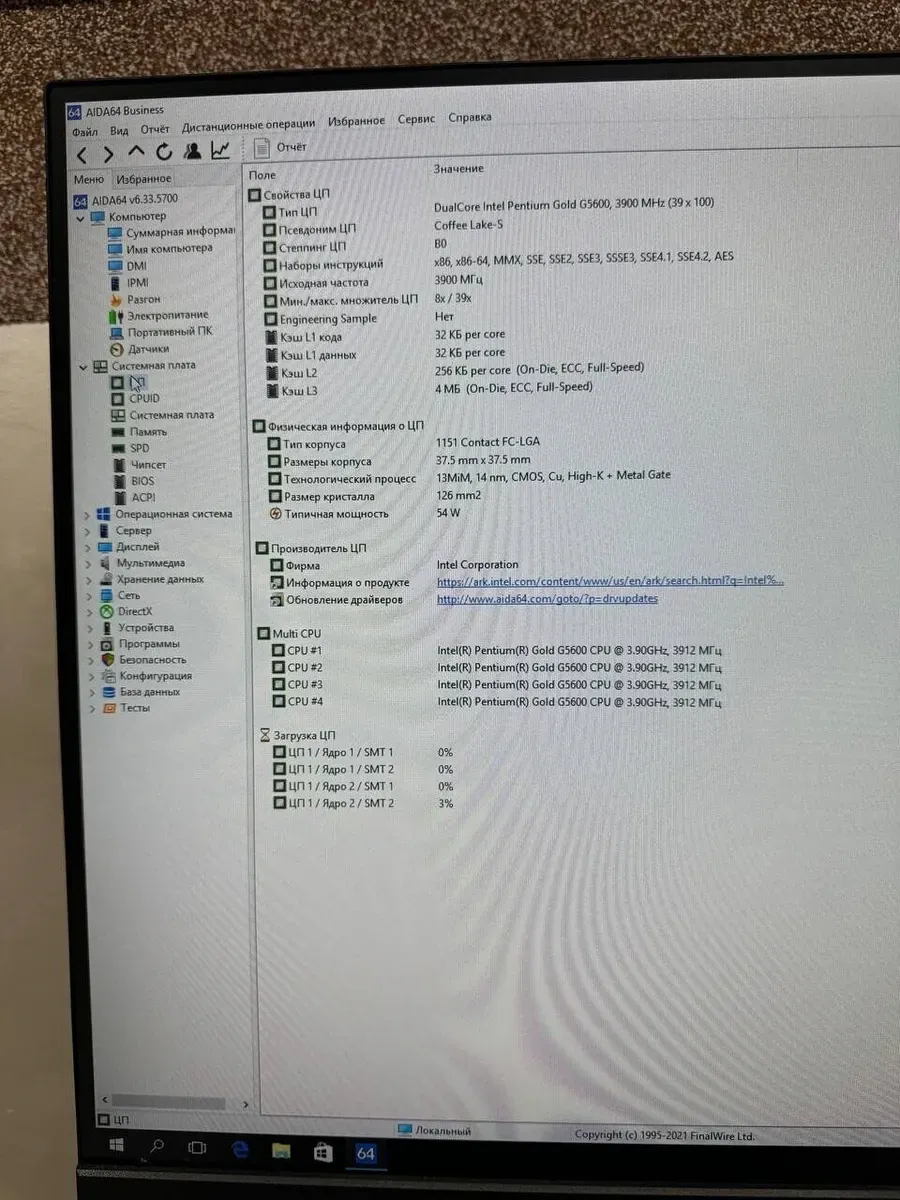 - Процесор: Intel Pentium Gold G5600 (4 ядра по 3.9 GHz), 4 MB Smart Cache