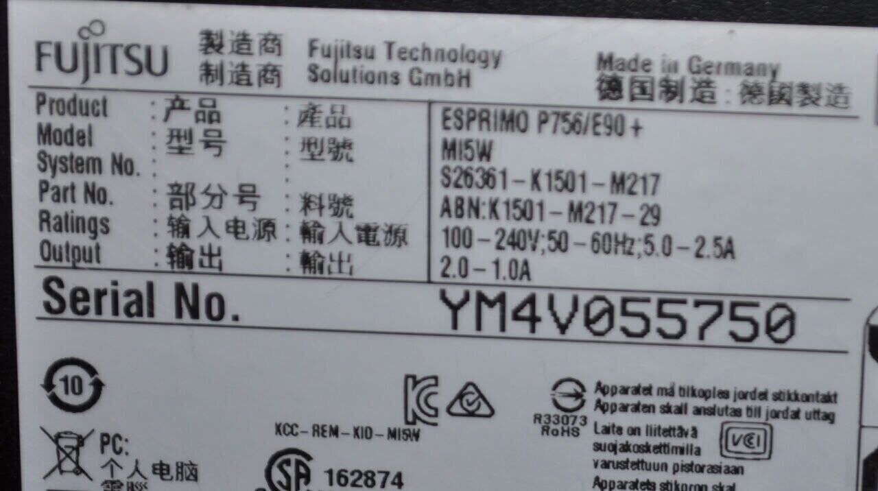 - Модель: Fujitsu Esprimo P756 E90+ Tower