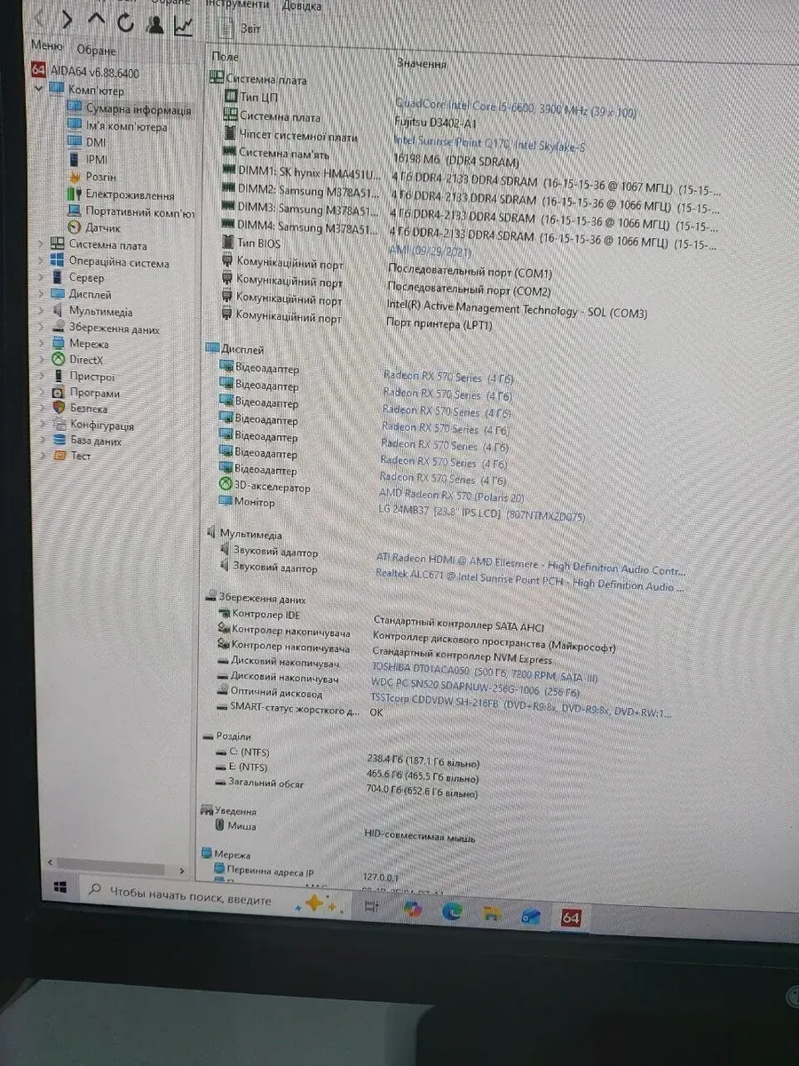 Комп'ютер Fujitsu Esprimo P956 E90+ Tower на базі процесора Intel Core i5-6600 і дискретною відеокартою AMD Radeon RX 570 4 GB для офісної роботи та домашніх завдань