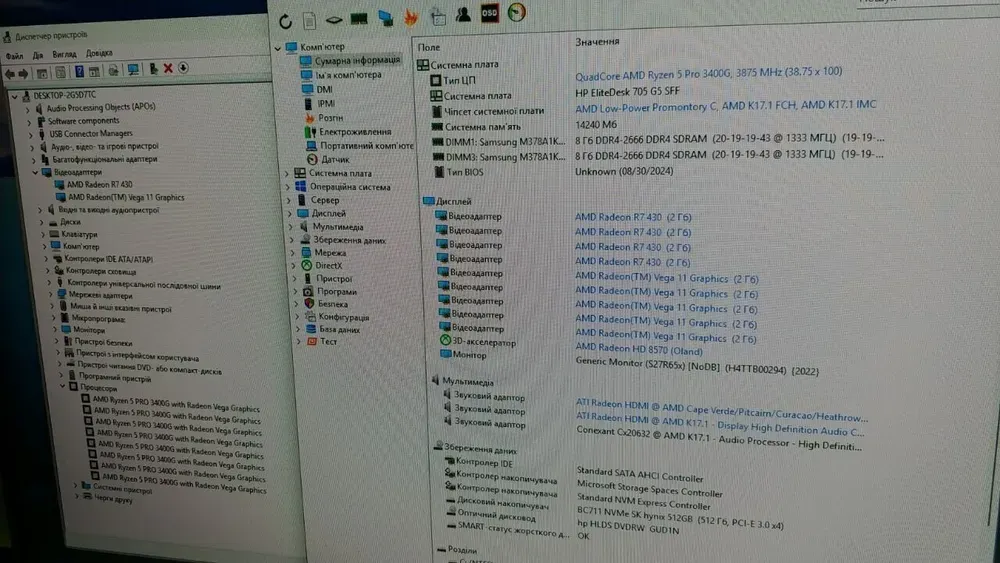 Комп'ютер HP Elitedesk 705 G5 SFF / AMD Ryzen 5 3400G (4(8) ядра по 3.7 - 4.2 GHz) / 16 GB DDR4 / 240 GB SSD+1000 GB HDD / AMD Radeon R7 430, 2 GB GDDR5, 128-bit / Windows б/в