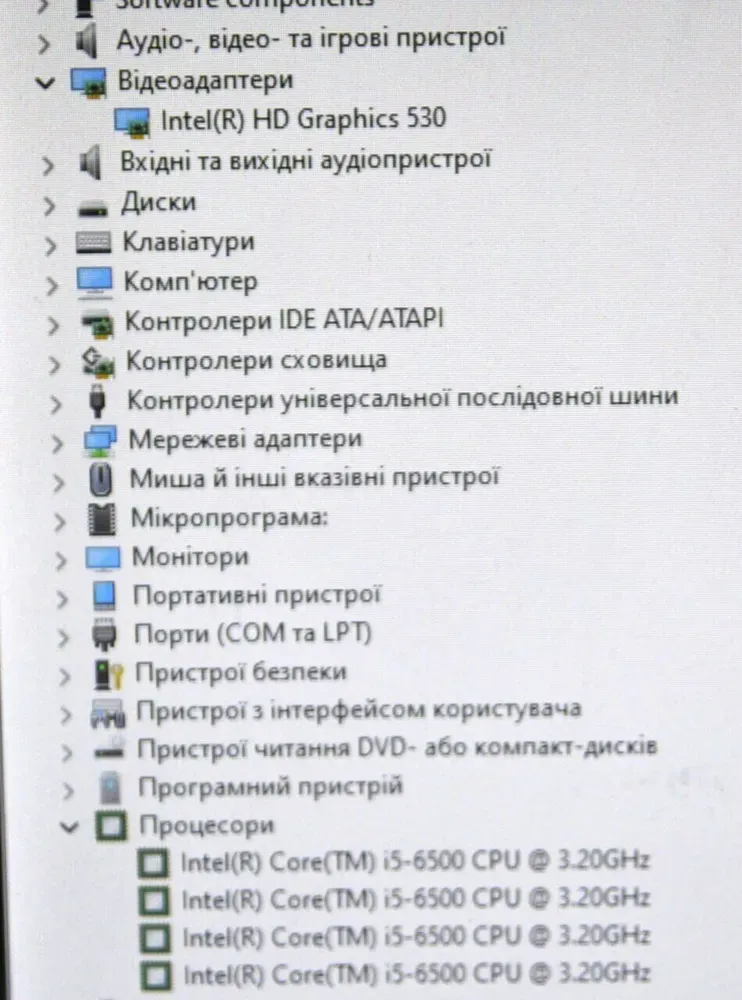 - Процесор: Intel Core i5-6500 (4 ядра по 3.2 - 3.6 GHz), 6 MB Smart Cache