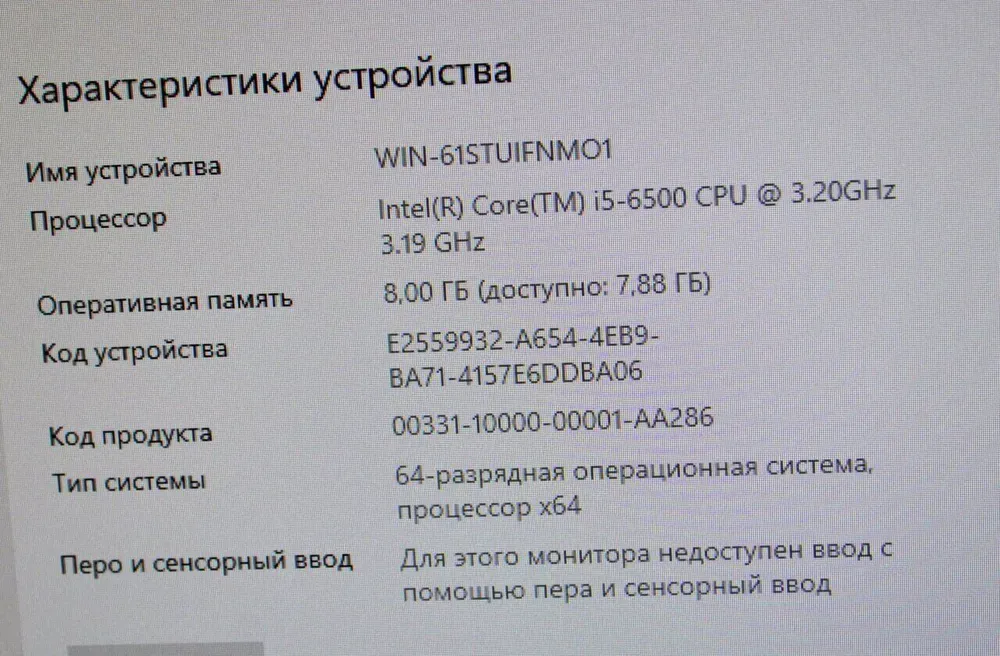 - Процесор: Intel Core i5-6500 (4 ядра по 3.2 - 3.6 GHz), 6 MB Smart Cache