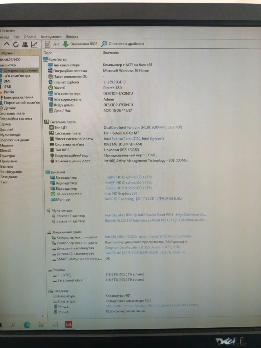 Комп'ютер HP ProDesk 600 G2 Tower на базі процесора Intel Pentium G4520 та оперативної пам'яті 8GB DDR4 для роботи та домашніх завдань