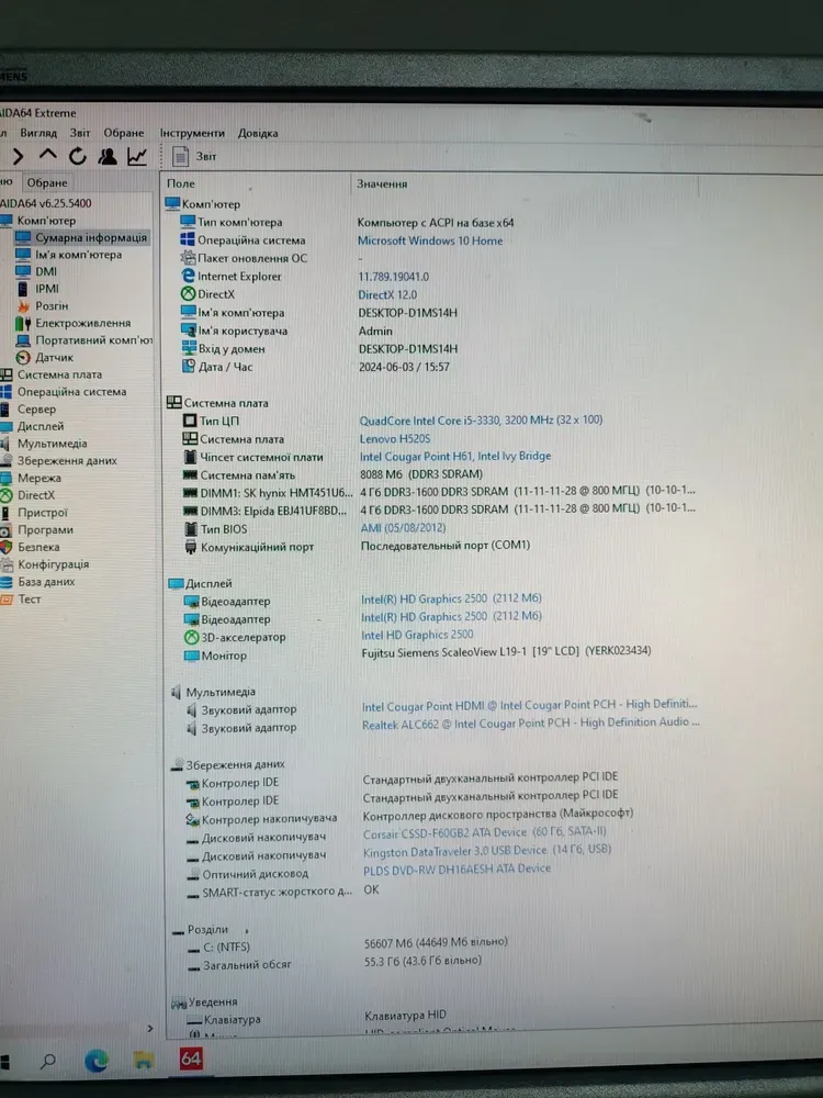 - Процесор: Intel Core i5-3330 (4 ядра по 3.0 - 3.2 GHz), 6 MB Smart Cache